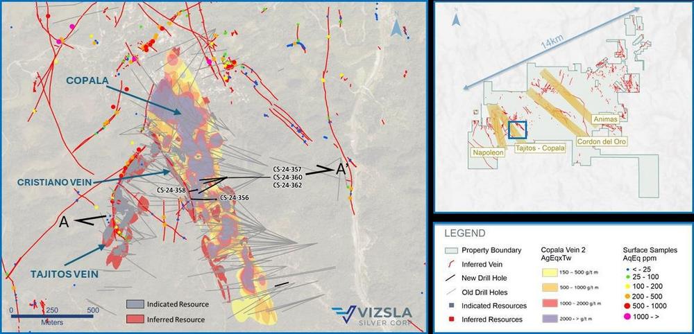 - CS-24-356 ergab 817 Gramm pro Tonne (g/t) Silberäquivalent (AgEq) über 4,20 Meter wahre Breite (mTW) (1.694 g/t Silber und 103,20 g/t Gold)