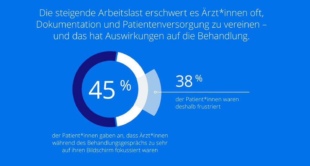 1Quelle: Studie zur Arzt-Patienten-Erfahrung von Microsoft und Nuance, 2024 https://www.nuance.com/en-gb/healthcare/campaign/report/assessing-the-burden-of-clinical-documentation.html