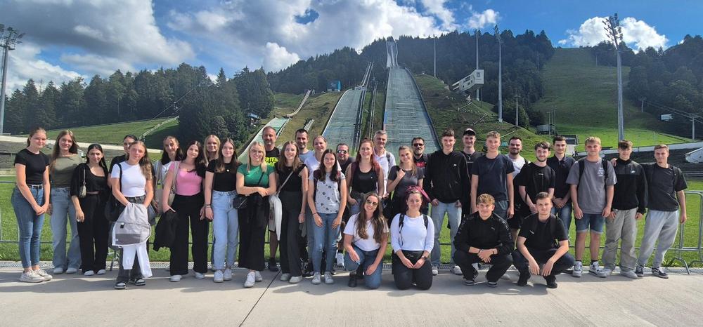 Als Teambildungsmaßnahme und zum Start der Ausbildung sind alle 27 Azubis von Juzo mit deren Ausbilderinnen und Ausbildern nach Garmisch-Partenkirchen gefahren und haben dort gemeinsam die Skisprungschanze erklommen. Geschichtliche Beiträge wurden ihnen von alten Olympiatrainern vorgetragen.