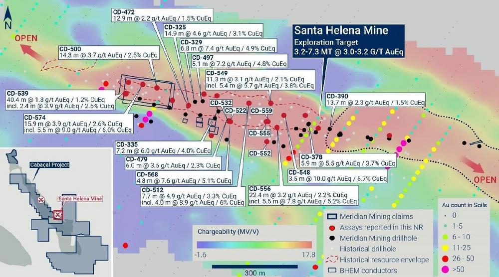 - Meridian’s Santa Helena drill program reports continued high-grade Au-Cu-Ag & Zn mineralization;
