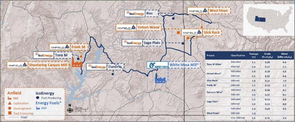 Im Mai 2023 schloss Anfield eine vorläufige wirtschaftliche Bewertung ab, die davon ausging, dass die Mineralverarbeitung der Projekte Velvet-Wood und Slick Rock in der Shootaring Canyon Mill stattfinden würde.