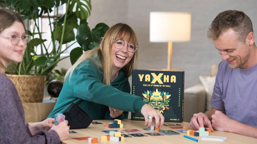 Erschafft das 8. Weltwunder! In Yaxha lässt du dich von den faszinierenden Pyramidenbauten der Mayas im heutigen Guatemala inspirieren. Sammle farbige Holzwürfel und baue deine eigene Pyramide. Achte darauf, welche Würfel dir die meisten Siegespunkte bringen und gleichzeitig am besten zu deinem Bauwerk passen. In jeder Runde gibt es mehrere 3er-Holzwürfelgruppen.