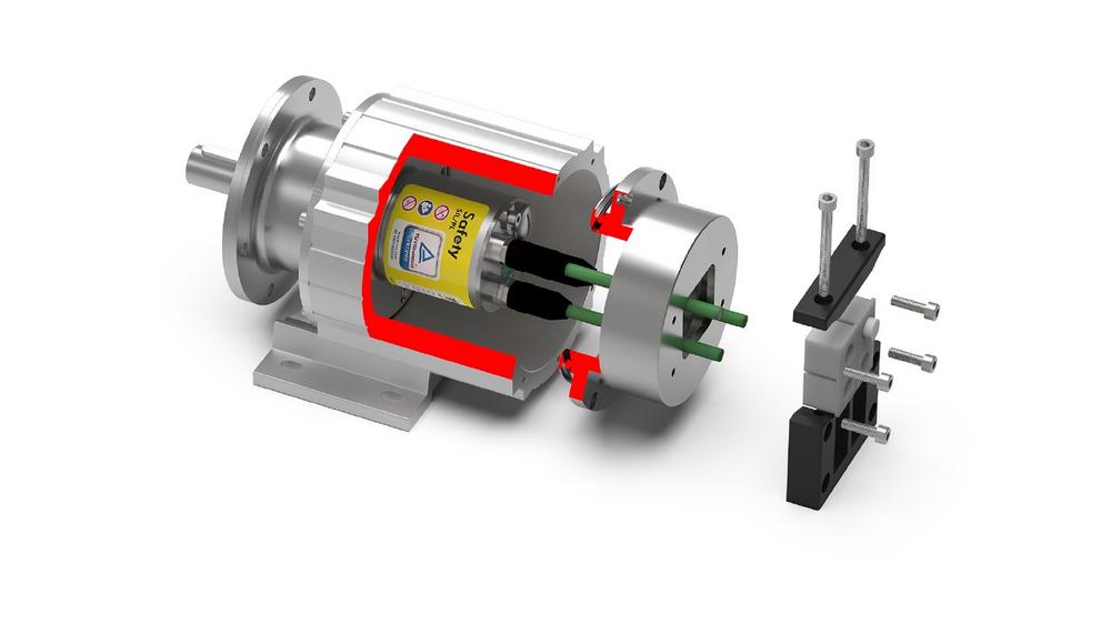 Die bewährte Mechanik des 115er-Schutzgehäuses bietet einen verstärkten Montageflansch und einen robusten Montagefuß. Krafteinwirkungen auf die Welle werden durch zwei kräftige Lager in den Flansch abgeleitet. Der innenliegende Drehgeber wird vom umgebenden Alu-Stranggussgehäuse mit einer Wandstärke von 20 mm von schädlichen Einflüssen abgeschirmt.