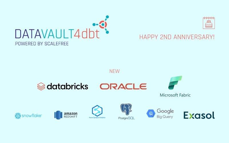 To mark this milestone, Datavault4dbt has released three new connectors, expanding its compatibility to include Oracle, Databricks, and Microsoft Fabric. These additions further solidify Datavault4dbt’s commitment to providing a comprehensive and accessible solution for Data Vault automation across a wide range of data platforms.