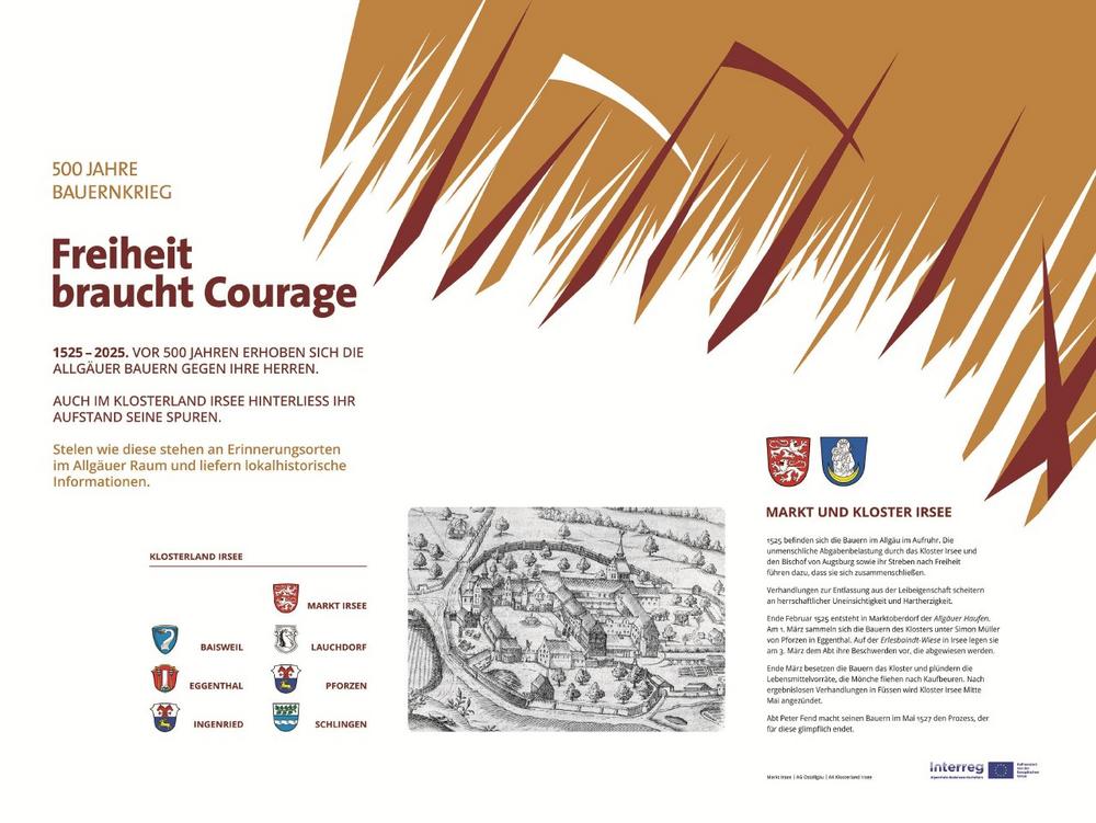 Zum Abschluss der Veranstaltung (12. März, 14 Uhr) wird auf Anregung des Arbeitskreises Klosterland Irsee auf dem Gelände der historischen „Erlesbaindt-Wise“ (heute: Streuobstwiese oberhalb von Kloster Irsee) feierlich eine Stele eingweiht, die künftig dauerhaft an die Ereignisse von 1525 erinnern soll.