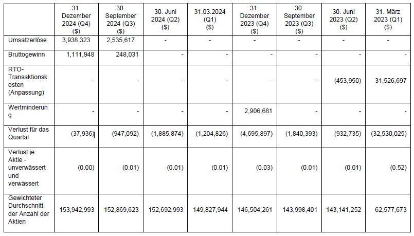 • Der Bruttogewinn für das GJ 2024 betrug 1,36 Millionen Dollar.