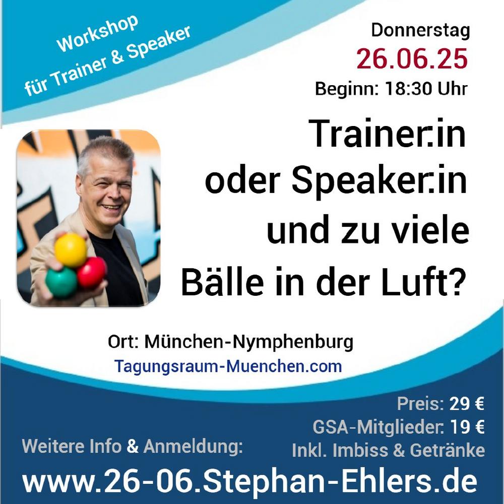 In diesem 90-minütigen Workshop-Format gibt Ehlers nicht nur einen unterhaltsamen Einblick in seine fast 30-jährige Karriere – er vermittelt auch wertvolles Praxiswissen rund um Positionierung, Marketing, Auftritt und Tools, die im Trainings- und Speaker-Business wirklich funktionieren.