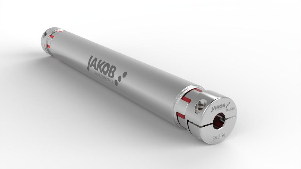 In addition to the Simple-Flex, WD, WDS, WDB, and WD-VA connecting shafts, Jakob also offers another standard series and customized solutions for bridging large center distances: the EKHZ series, based on EKH series elastomer couplings. The EKHZ series is primarily used in applications with medium operating speeds. It covers a torque range of 20 to 1600 Nm and allows maximum speeds of 3500 rpm with a minimum length of 50 cm. It is suitable for shaft diameters of 10 to 100 mm. The maximum achievable length of the EKHZ series is generally three meters. The EKHZ series allows for efficient vibration damping. The degree of vibration damping can be adjusted by adjusting the Shore hardness of the compensation elements. The plastic spiders used offer two advantages: even without a half-shell design, the couplings are pluggable, making them easy to install. Furthermore, the plastic provides thermal and electrical insulation. Due to the properties of the material used, these couplings can only be used up to 90°C, with the permissible transmission torque decreasing with increasing temperature.