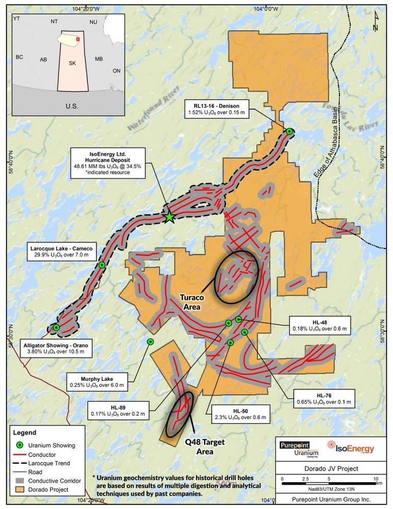 Diese Pressemeldung bezieht sich auf andere Liegenschaften als jene, an denen IsoEnergy und Purepoint beteiligt sind. Die Mineralisierung auf diesen anderen Liegenschaften ist nicht unbedingt ein Hinweis auf die Mineralisierung auf den Joint-Venture-Liegenschaften.