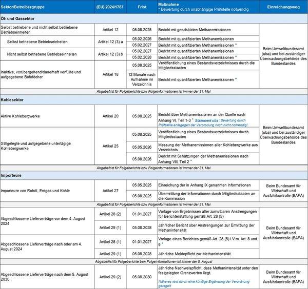 Betreiber sind jährlich zur Einreichung von Berichten über ihre Methanemissionen bei den zuständigen Behörden verpflichtet. Ein Großteil dieser Berichte unterliegt der Verifizierungspflicht durch eine unabhängige Prüfstelle. Dabei werden im Rahmen eines Audits unter anderem das Berichtskonzept, die Auswahl und Anwendung der Emissionsfaktoren sowie die Erfassung, Verarbeitung und Verwaltung der Daten geprüft.