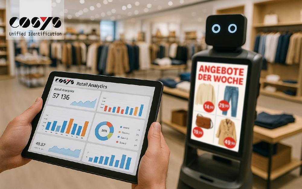 Ergänzt wird das COSYS-Ökosystem durch moderne Service-Roboter wie den LuckiBot. Dieser unterstützt Verkaufsprozesse, indem er Kunden gezielt anspricht, Aktionsware bewirbt oder Fragen beantwortet. Gleichzeitig entlastet er das Personal, sammelt Bewegungsdaten und fügt sich nahtlos in das Gesamtbild einer digitalen, messbaren Retail-Umgebung ein.