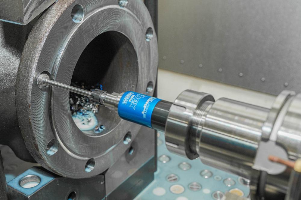 Die VETEC Ventiltechnik GmbH steht für „Engineering Excellence“ im Maschinen- und Anlagenbau. Das Unternehmen mit rund 115 Beschäftigten gehört zur SAMSON Gruppe und ist weltweit bekannt für seine individuell gefertigten Drehkegelventile, pneumatischen Antriebe und Sonderarmaturen. Die Besonderheit: Statt Serienfertigung setzt VETEC konsequent auf maßgeschneiderte Einzellösungen, die präzise auf die Anforderungen der Kunden abgestimmt werden – häufig aus schwer zerspanbaren Werkstoffen wie Kobaltbasislegierungen, Titan oder Zirkonium. Gefertigt werden die verschiedenen Bauteile auf einer modernen NC-Maschinenflotte mit Bearbeitungszentren von Heller, DMG, Index und anderen. Dank eines konsequent digitalisierten Shopfloors – u. a. mit COSCOM-Integration und Info-Terminals – laufen Prozesse effizient und transparent. Dennoch sorgte ein Thema immer wieder für Verzögerung: das Entgraten von Durchgangsbohrungen in Edelstahl-Gehäusen, die als Flansch eingesetzt werden.
