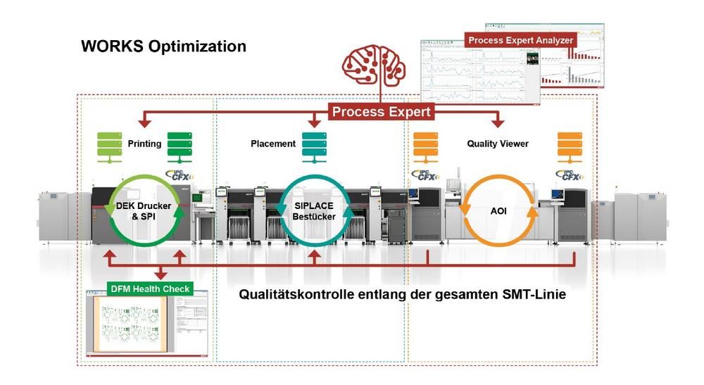 Während viele Inspektionssysteme nach wie vor auf einzelne Produkte oder Stationen fokussiert sind, erweitert WORKS Optimization mit dem Process Expert Inline-System den Blick auf die gesamte Linie. Die drei Module – Printing, Placement und Quality Viewer – erfassen Prozesswerte aus Druck- und Bestücksystemen sowie SPI- und AOI-Daten über die standardisierte IPC-2591-CFX-Schnittstelle. Diese produkt- und linienübergreifende Betrachtung hilft, Fehlerursachen sowohl lokal als auch im Gesamtprozess schneller einzugrenzen und gezielt zu beheben – selbst bei sporadischen Abweichungen, die im Alltag oft unentdeckt bleiben.