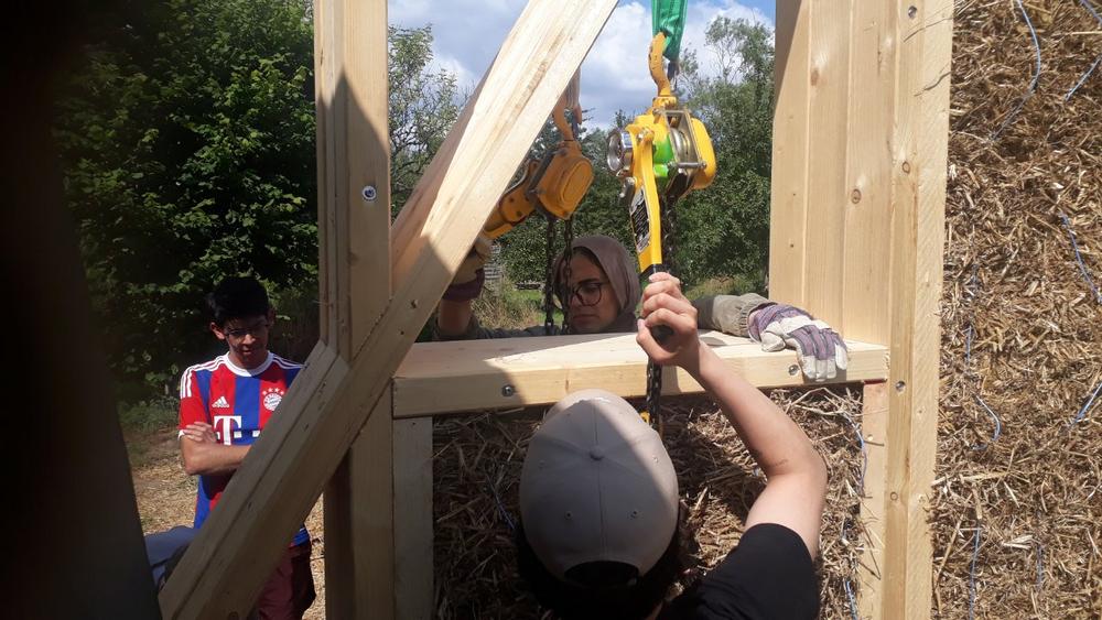 Neben dem Bau eines Strohballenhauses, das bald für Jugendfreizeiten und Klassenfahrten genutzt werden soll, standen auch Pflegearbeiten zur Attraktivierung des Klimaparks auf dem Programm. Das Highlight zum Abschluss war aber die Installation eines Balkonkraftwerks und der Bau von kleinen Solar-Karussellen. Mit denen können die Ehrenamtler demnächst auch in Kölner Schulen zeigen, wie die friedliche Energie in die Steckdose kommt.