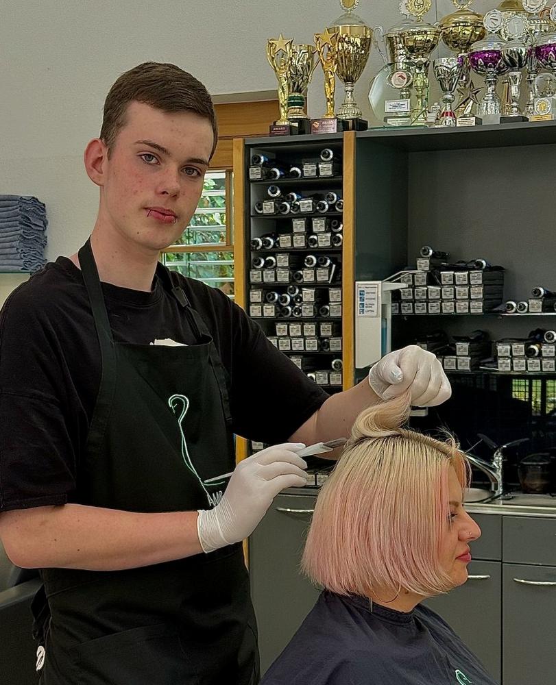 Im Salon übernimmt Cleve immer mehr Aufgaben und betreut mittlerweile Männer selbständig. Und nach und nach arbeitet er sich ins Damenfach, in verschiedene Schnitttechniken und Stylings ein. Allerdings geschieht das aktuell noch unter „Aufsicht“ einer erfahrenen Kollegin oder der Ausbilderin, die im Fall der Fälle eingreifen könnten, wie Cleve lachend anmerkt. Zu seinen Lieblingstätigkeiten zählt der Auszubildende die Arbeit mit Farben, das Föhnen und natürlich das Haare schneiden. Zu seinen Modellen, die sich ihm anvertrauen, zählen auch einige Kundinnen des Salons. Cleve freut sich über dieses positive Feedback.