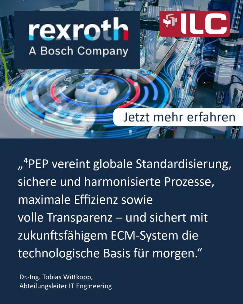 Um den wachsenden Anforderungen globaler Märkte gerecht zu werden und die Chancen der digitalen Transformation konsequent zu nutzen, setzt Bosch Rexroth auf das ⁴PEP Änderungsmanagement in Kombination mit der ⁴PEP Process Engine.
