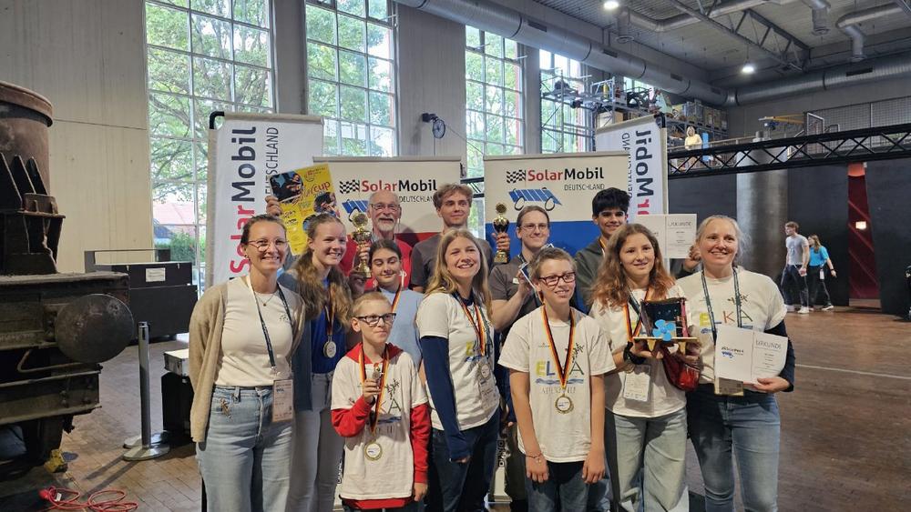 Weitere positive Erfahrungen und Erfolge sammelten auch die drei weiteren Teams aus dem Norden: Amir Hazim von der Johannes Brahms Schule Pinneberg belegte in der Ultraleichtklasse (15-18 Jahre) mit seinem Boliden „Verstappen“ den 4.Platz. In der Kreativklasse hatten sich gleich zwei Teams beim Regionalwettbewerb im Glücksburger Zentrum für nachhaltige Entwicklung, artefact mit selbstgebauten solaren Traumschiffen qualifiziert. Das vierköpfige Schüler-Team der Zehn- bis Zwölfjährigen Emil, Karl, Anni und Leevke von der Domschule in Schleswig belegten mit ihrem sagenumwobenen Traumschiff „Apyw 3“ den sechsten und Annika Benckert mit „Be happy“ den achten Platz in dem diesmal besonders großen Teilnehmerfeld der inzwischen sechzehnten Deutschen Meisterschaften. Seit bereits 17 Jahren richtet das Zentrum für nachhaltige Entwicklung, artefact, den Schleswig-Holstein-weiten Regionalwettbewerb durch und freut sich gemeinsam mit den Hauptsponsoren 2025 VFE SH und Stadtwerke Flensburg sowie der NOSPA, Autoschmiede Ringsberg, Stadtwerke SH, Wattmanufaktur, IGMetall Flensburg, SAT und Solar Andresen in diesem Jahr ganz besonders über die offensichtlich erfolgreiche Nachwuchsförderung.