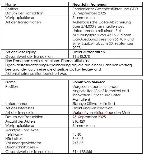 Sibanye-Stillwater, (Tickers JSE: SSW und NYSE: SBSW) (- https://www.commodity-tv.com/play/sibanye-stillwater-well-on-track-to-become-cash-flow-positive-again-restructuring-bears-fruits/ -) gibt gemäß den Absätzen 3.63 bis 3.74 der JSE Limited Listings Requirements Folgendes bekannt: