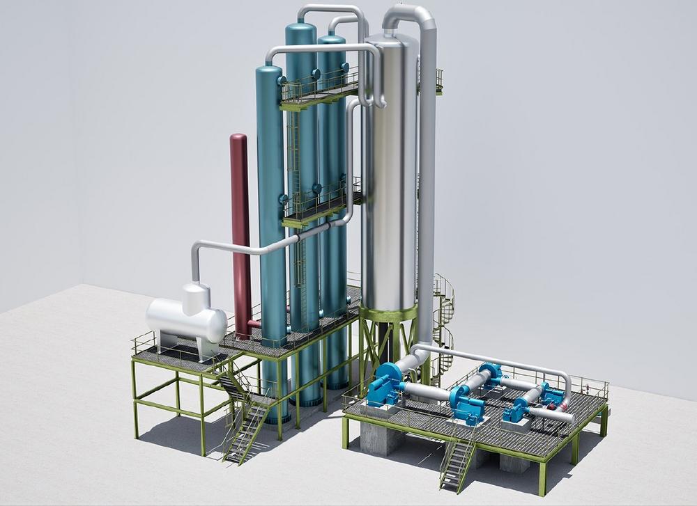 The plate falling-film evaporator can operate either as a standalone heat exchanger or in combination with Mechanical Vapor Recompression (MVR). In the latter configuration, the generated fresh steam is additionally raised to a higher energy level.