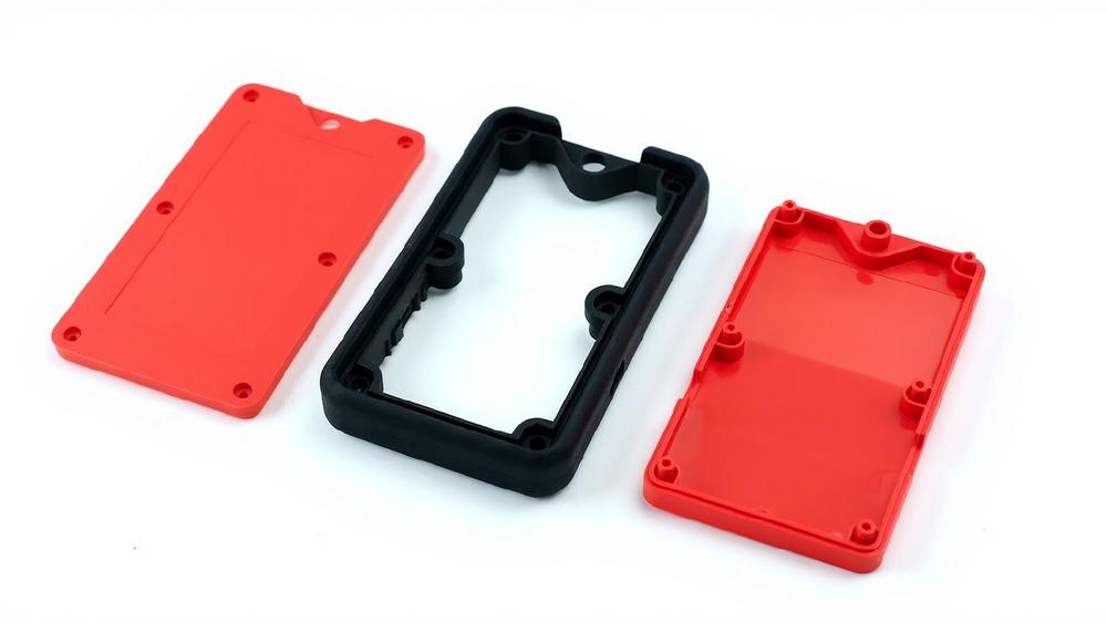 Das Kunststoffgehäuse wird mit zwei separaten Spritzgusswerkzeugen gefertigt – eines für den ABS-Kunststoff, eines für die Silikondichtung.