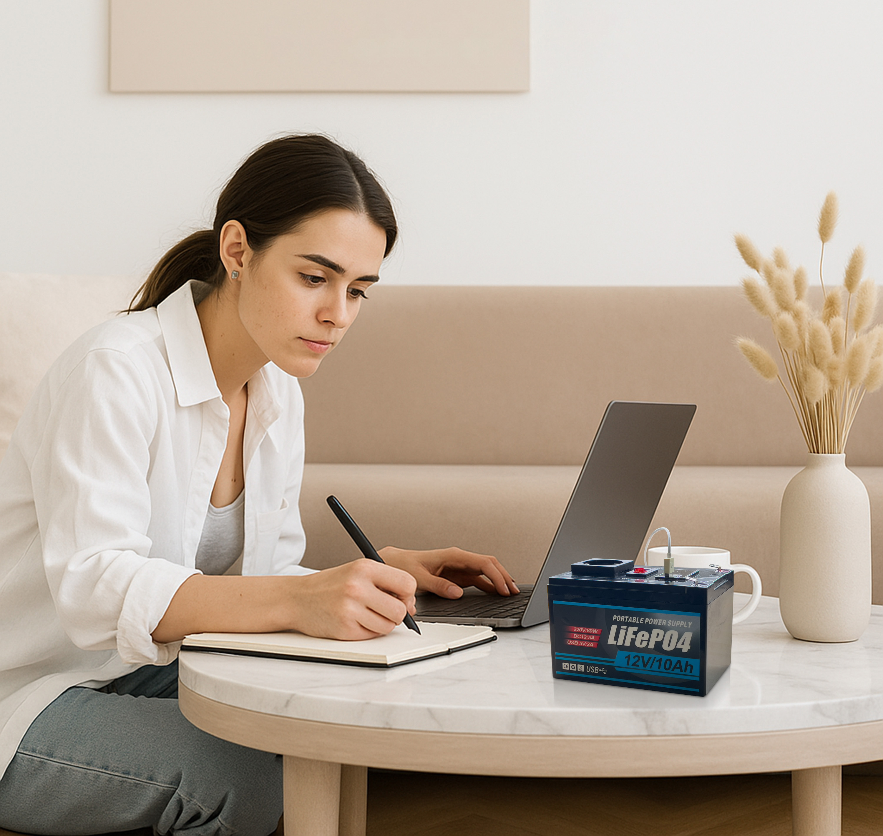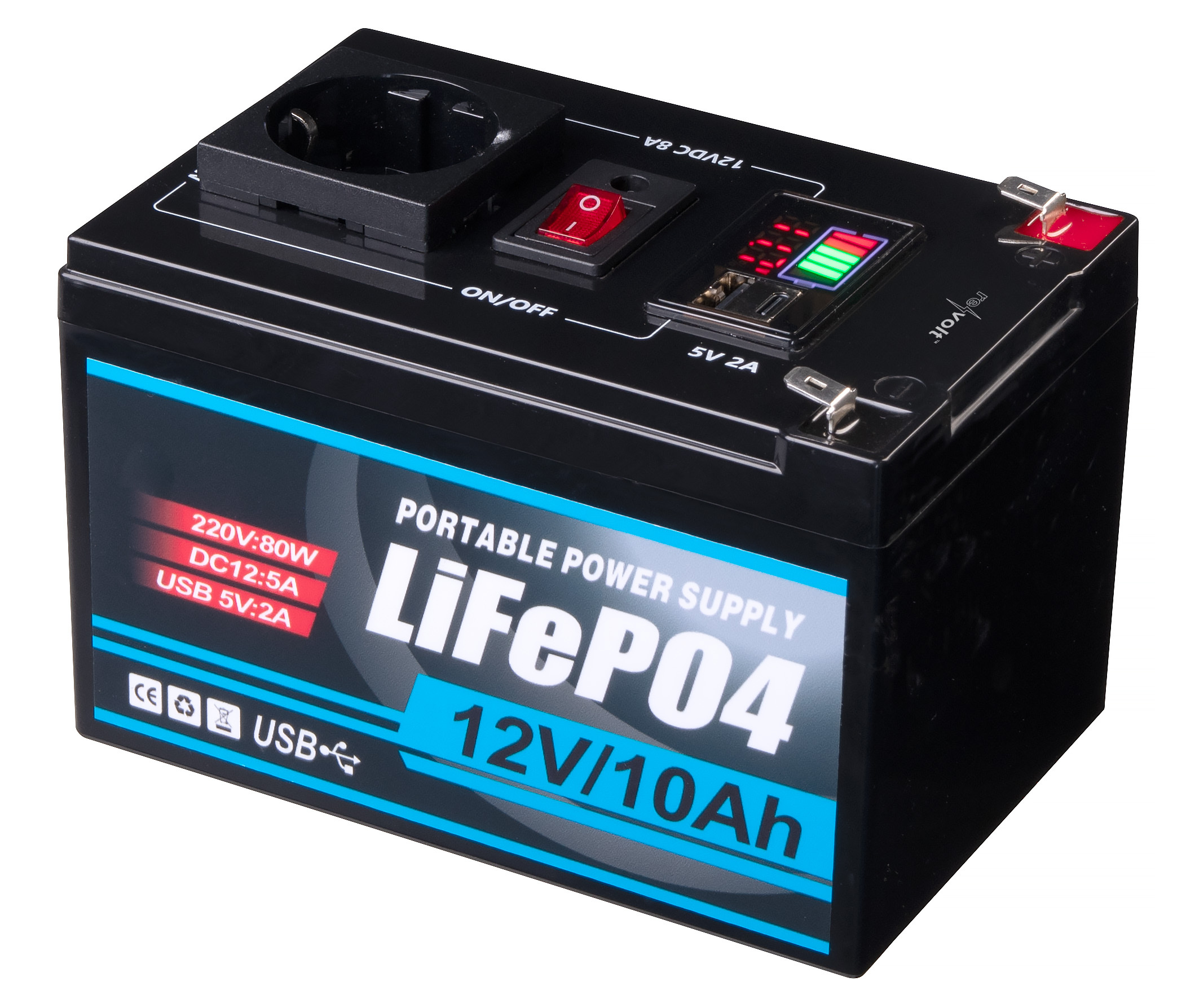 - Integrierter LiFePO4-Akku, lädt per 230-Volt-Netzteil, Solar (DC5521-Anschluss) oder Polklemmen (Solarpanel bitte dazu bestellen)