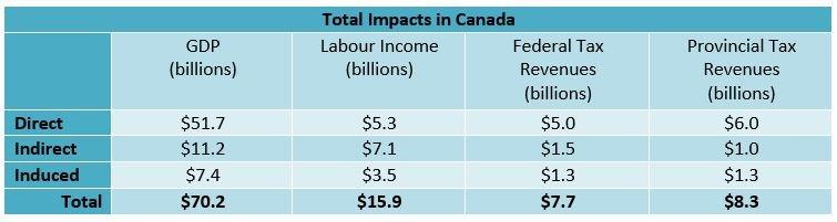 - On average, provides $16 billion in labour income from approximately 1,000 direct jobs and over 3,000 indirect and induced jobs