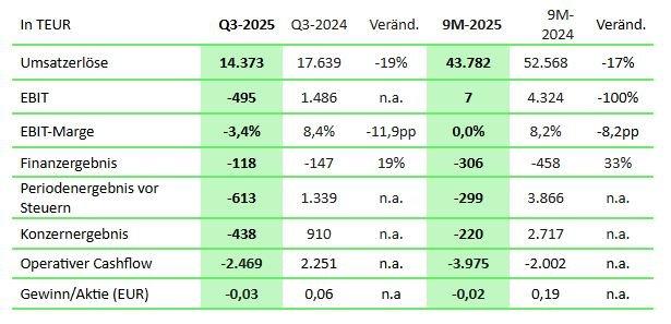 - Ausblick 2025: Umsatzrückgang um rund 17 Prozent bei einer EBIT-Marge von rund 0 Prozent