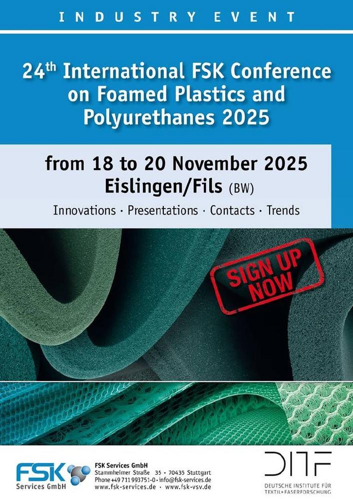 Further information on the Fachverband Schaumkunststoffe und Polyurethane e.V. (FSK – Specialist Association Foamed Plastics and Polyurethanes) and its events as well as the work of the specialist committees is available online at: www.fsk-vsv.de or by telephone: 0711 993 751- 0.
