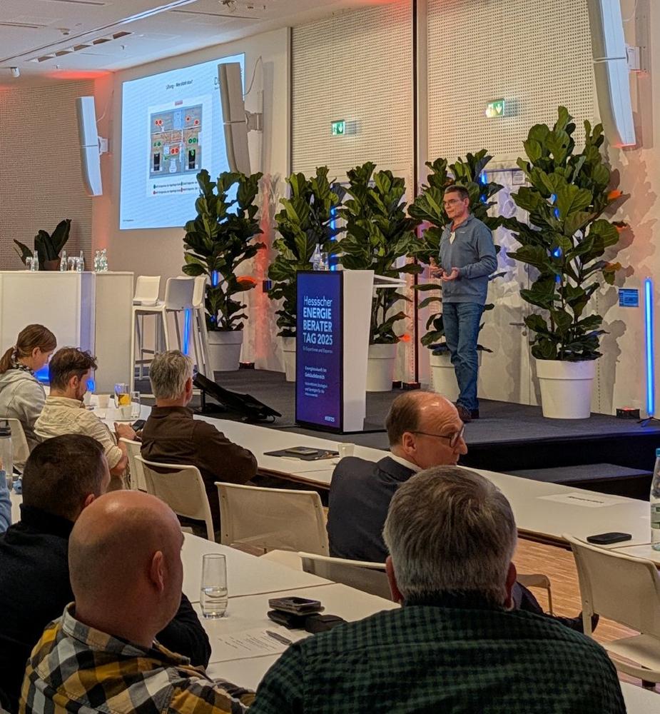 Auch die übrigen Vorträge des Hessischen Energieberatertags boten wertvolle Impulse für die Wärmewende, für die Zukunft der Branche. Sebastian Herkel (Fraunhofer ISE) setzte sich mit dem Thema technologieoffenen Heizsystemen auseinander, betonte hier, dass Verfechter jener Begriffe natürlich auch Kosten und Ressourcen berücksichtigen sollten. Es könne kaum sinnvoll sein, jede Technik überall zur Verfügung stellen wollen. Weiter machte er deutlich, dass die Klimaziele technisch sehr wohl noch erreichbar sind. Entscheidend sei, wie die Gesellschaft die begrenzten Handwerks- und Finanzressourcen nutzen wolle.