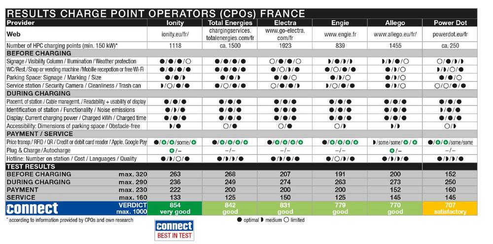 "Congratulations to Ionity for winning this year’s charging network test. As in the previous year, a particularly high level of performance can be observed in France. There is also clear progress in the expansion of the e-mobility infrastructure – the number of charging points continues to grow," says connect author Hannes Rügheimer.