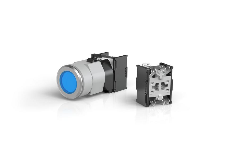 - Verschiedene Kontaktmaterialen und Kontaktkonfigurationen ermöglichen diverse Einsatzmöglichkeiten, z.B. Tastschaltelemente mit zwangsöffnenden Kontakten für NOT-HALT Tasten