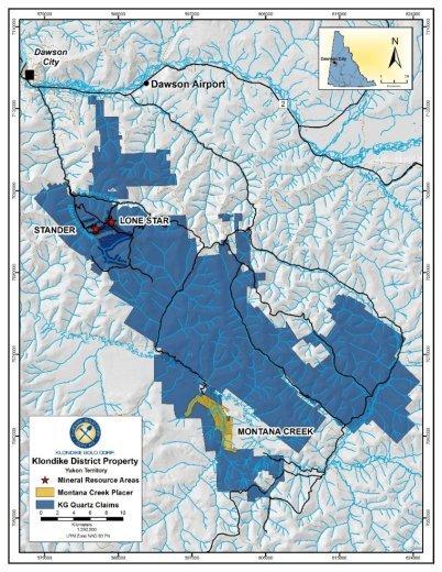 Klondike Gold ist ein in Vancouver ansässiges Goldexplorationsunternehmen, das sein zu 100 % unternehmenseigenes Goldprojekt Klondike District in Dawson City (Yukon), einer der führenden Bergbauregionen der Welt, erschließt. Die Explorationen im Goldprojekt Klondike District zielen auf Gold in Festgestein ab, das in Verbindung mit der 55 Kilometer langen distriktgroßen orogenen Verwerfung des berühmten Seifenerzgebiets Klondike Goldfields steht. Unter anderem wurden in der Lone Star Zone und der Stander Zone mehrere Kilometer lange Goldmineralisierungen identifiziert. Das Unternehmen hat eine auf den Tagebau beschränkte Mineralressourcenschätzung von 469.000 an angezeigten und 112.000 an abgeleiteten Unzen Gold[1] ermittelt, was einen Meilenstein für den Bezirk Klondike darstellt. Das Unternehmen unterhält derzeit eine Royalty-Beteiligung, die potenziell erhebliche saisonale Bareinnahmen aus dem gepachteten Seifengoldkonzessionsgebiet Montana Creek generiert. Das Unternehmen konzentriert sich auf die Erkundung und Erschließung seines 729 Quadratkilometer großen Konzessionsgebiets, das sowohl über Linienflüge als auch über gut gewartete staatliche Straßen erreichbar ist. Das Konzessionsgebiet befindet sich außerhalb der Stadt Dawson City (Yukon) in einem Gebiet, das traditionell der Tr’ondëk Hwëch’in First Nation gehört.