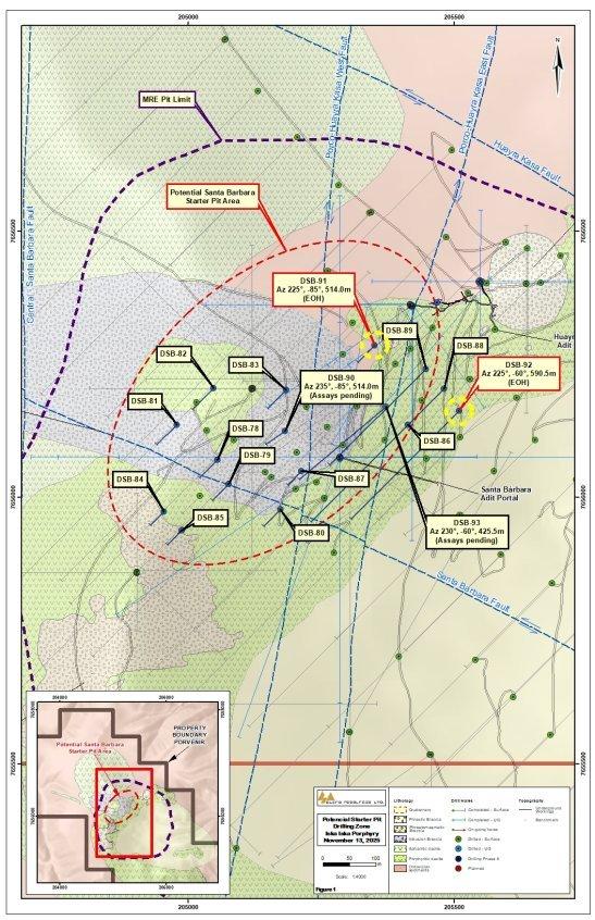 – Die potenzielle Startergrube in der Zone Santa Barbara ist weiterhin seitlich und neigungsabwärts offen, wobei die Definitionsbohrungen weiterhin lange und höhergradige Abschnitte liefern. Zusätzliche Infill- und Step-out-Bohrungen bieten ein erhebliches Potenzial für die weitere Erweiterung und Aufwertung der Mineralressourcen für die geplante PEA.