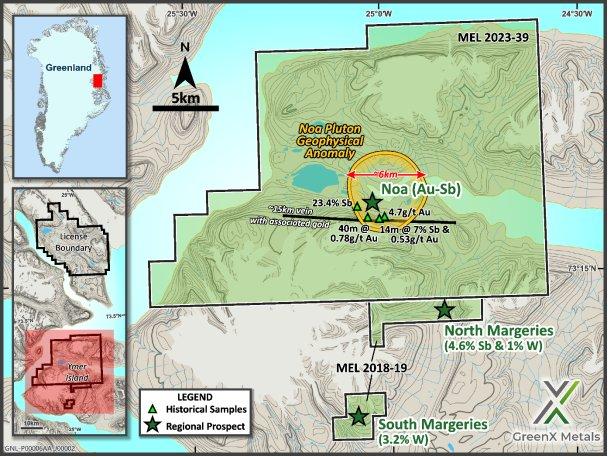 Der Vorstandsvorsitzende von GreenX, Ben Stoikovich, kommentierte: "Wir konnten bei Eleonore North eine Reihe von potenziell hochwertigen Gold-, Wolfram- und Antimonzielen identifizieren, die eine weitere Exploration rechtfertigen. Wolfram und Antimon sind als kritische Mineralien für die Europäische Union und die USA gelistet, und angesichts der Rekordpreise für Gold bieten wir unseren Aktionären ein Engagement in einer großen und wenig erforschten Region mit sehr begehrten Mineralien.