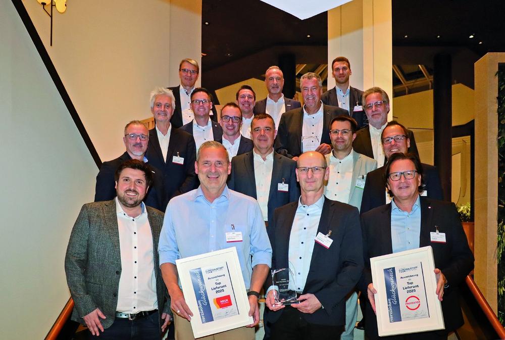 Ein Höhepunkt des Abends war die traditionelle Ehrung der Industriepartner für 2025, die von den Fachgruppensprechern Udo Gräbel, geschäftsführender Gesellschafter Bau-Ma-Tec, und Thomas Raab, Geschäftsführer Fassbender Tenten, vorgenommen wurde. Im Vorfeld hatten die 42 Fachgruppenmitglieder die Zusammenarbeit, Marktausrichtung und Weiterentwicklung des WDVS-Geschäfts mit ihren Industriepartnern bewertet, um auf diesem Weg die Top-Lieferanten 2025 der Fachgruppe Putze/WDVS zu ermitteln.