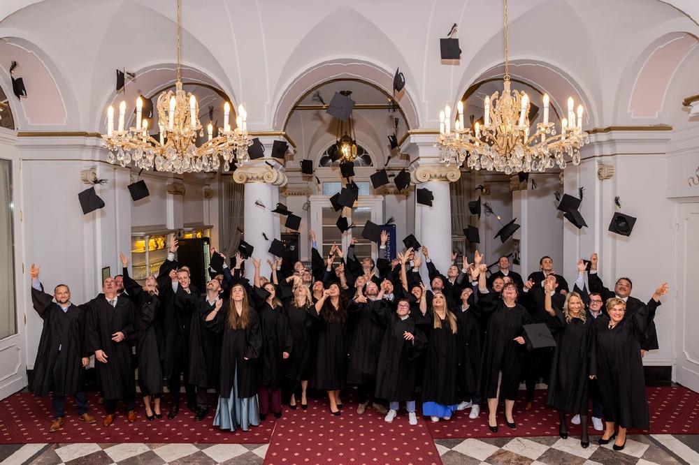 Das am Campus Remagen angebotene MBA-Fernstudienprogramm der Hochschule Koblenz lud am 22. November 2025 zum Absolventenball in Bad Ems ein. Rund 50 neue Master of Business Administration folgten der Einladung, begleitet von Familien und Freundinnen/Freunden. Insgesamt 150 Gäste füllten den stimmungsvoll geschmückten Marmorsaal. Das berufsbegleitende MBA-Fernstudienprogramm der Hochschule Koblenz wird seit 2003 am Campus Remagen in Kooperation mit dem zfh – Zentrum für Fernstudien im Hochschulverbund durchgeführt.
