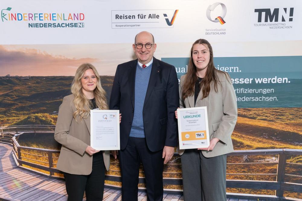 Rund 60 Qualitätszertifikate wurden heute vom Niedersächsischen Staatssekretär aus dem Ministerium für Wirtschaft, Verkehr und Bauen, Matthias Wunderling-Weilbier, an Betriebe und Anbieter touristischer Dienstleistungen vergeben. Mit den Initiativen Kinderferienland Niedersachsen, ServiceQualität Deutschland und Reisen für Alle trägt die Landesregierung zur nachhaltigen Verbesserung und Stärkung der Qualität im Niedersachsentourismus bei. Auch der Tourismus-Service Butjadingen freute sich, bei der heutigen Verleihungsveranstaltung in Hannover mit gut 80 Teilnehmenden mit den beiden Zertifikaten für Kinderferienland Niedersachsen und ServiceQualität Deutschland ausgezeichnet zu werden.