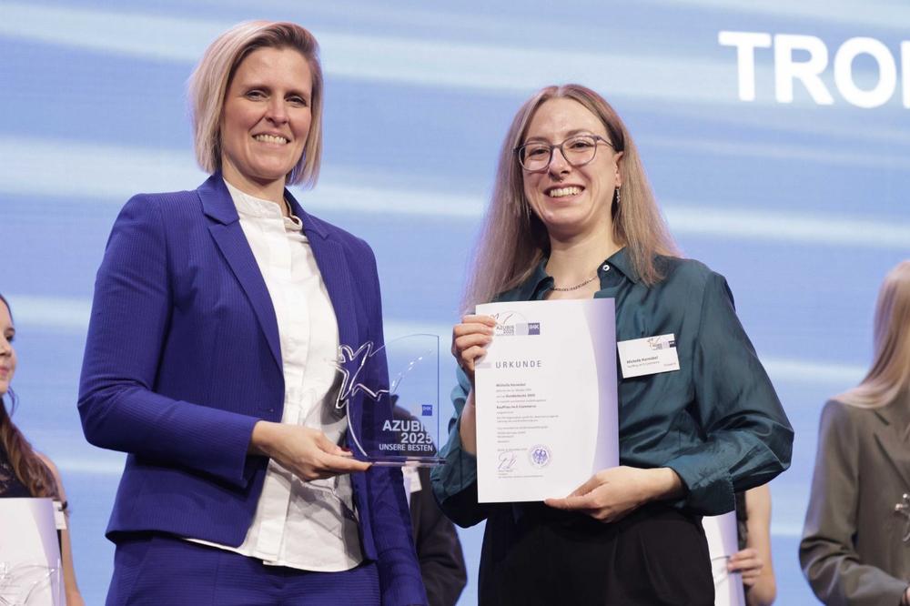 Im Rahmen der feierlichen nationalen Bestenehrung der IHK wurden die herausragendsten Absolventinnen und Absolventen aus ganz Deutschland geehrt. Michelle Hornickel setzte sich dabei als Beste der Besten im Ausbildungsberuf Kauffrau im E-Commerce bundesweit durch und erhielt die höchste Auszeichnung ihres Fachs. Die Ehrung in Berlin würdigt nicht nur die außergewöhnliche Leistung von Michelle Hornickel, sondern auch die hohe Qualität der beruflichen Ausbildung bei TROIKA. Gute Ausbildungsergebnisse sind immer auch ein Beweis für eine fundierte, engagierte und zukunftsorientierte Ausbildungsarbeit im Unternehmen. TROIKA zählt damit in diesem Jahr zu den Ausbildungsbetrieben, deren Auszubildende ihre Lehre mit einem herausragenden Ergebnis abgeschlossen haben.