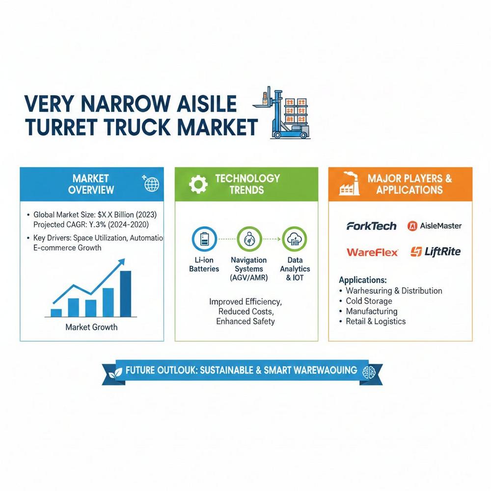 - Industrial Growth: Sectors such as pharmaceuticals, automotive parts, and food & beverage increasingly rely on VNA turret trucks for their dense storage and high-reach capabilities.