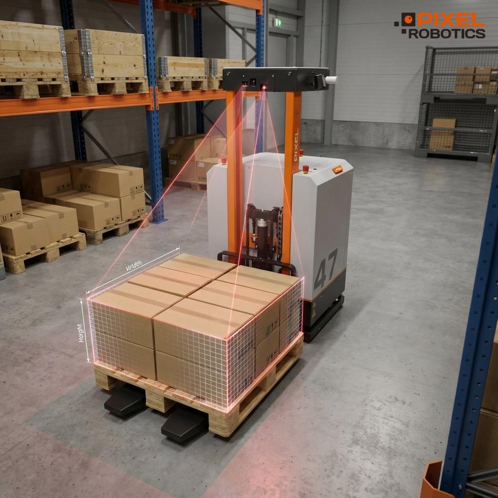 The Pixel PT can detect the height of a picked-up pallet and use this data for volume optimization in outbound logistics. The measured values can also be considered in tour planning: large pallets can be sent directly to the dock, while smaller pallets can first be routed to a consolidation stage.