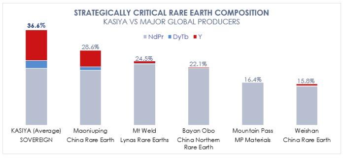 Diese Zusammensetzung unterscheidet Kasiya klar von allen großen globalen Seltenerdproduzenten. Die fünf größten Betriebe – die zusammen über 70 % der globalen Produktion ausmachen – werden von leichten Seltenerdmetallen dominiert. Strategisch kritische schwere Seltene Erden, die von den Lieferketten für Spitzentechnologie, Verteidigung und Industrie in den USA, Japan und der EU dringend benötigt werden, sind in diesen Lagerstätten nur in Spurenmengen oder gar nicht vorhanden.