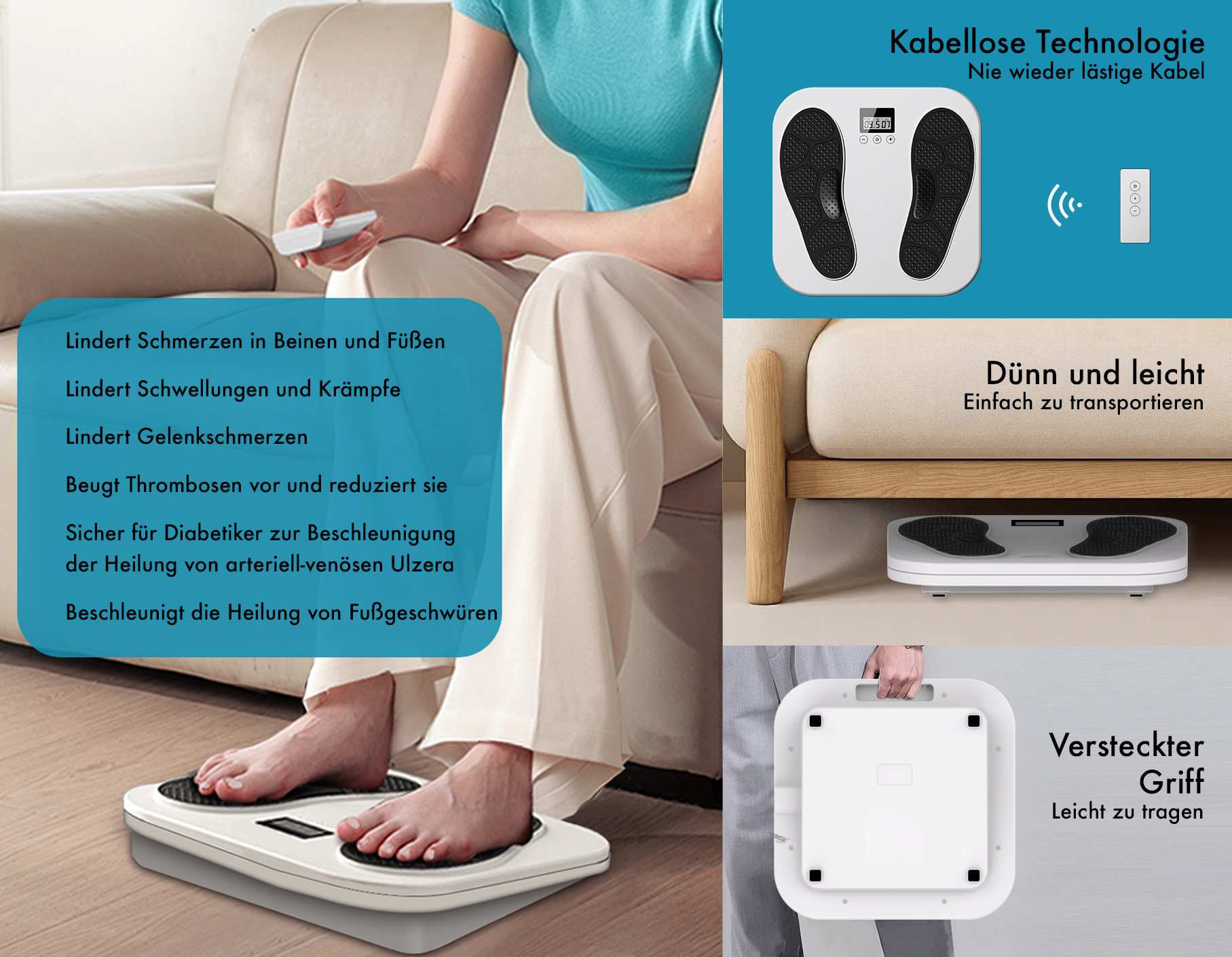 • Geeignet für Beine und Füße: einfach auf die Fußelektroden des Durchblutungsstimulators stellen
