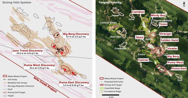 Miata Metals Corp. (CSE: MMET) ist ein kanadisches Mineralexplorationsunternehmen, das an der Canadian Securities Exchange sowie an den Börsen OTCQB (OTCQB: MMETF) und Frankfurt (FSE: 8NQ) notiert ist. Das Unternehmen konzentriert sich auf den Erwerb, die Exploration und die Erschließung von Mineralliegenschaften. Das Unternehmen hält eine 70-prozentige Beteiligung am ~215 km2 großen Goldprojekt Sela Creek mit einer Option auf den Erwerb einer 100-prozentigen Beteiligung an dem Projekt sowie eine 70-prozentige wirtschaftliche Beteiligung am Goldprojekt Nassau mit einer Option auf den Erwerb einer 100-prozentigen Beteiligung. Beide Explorationsliegenschaften befinden sich im Greenstone Belt von Suriname.