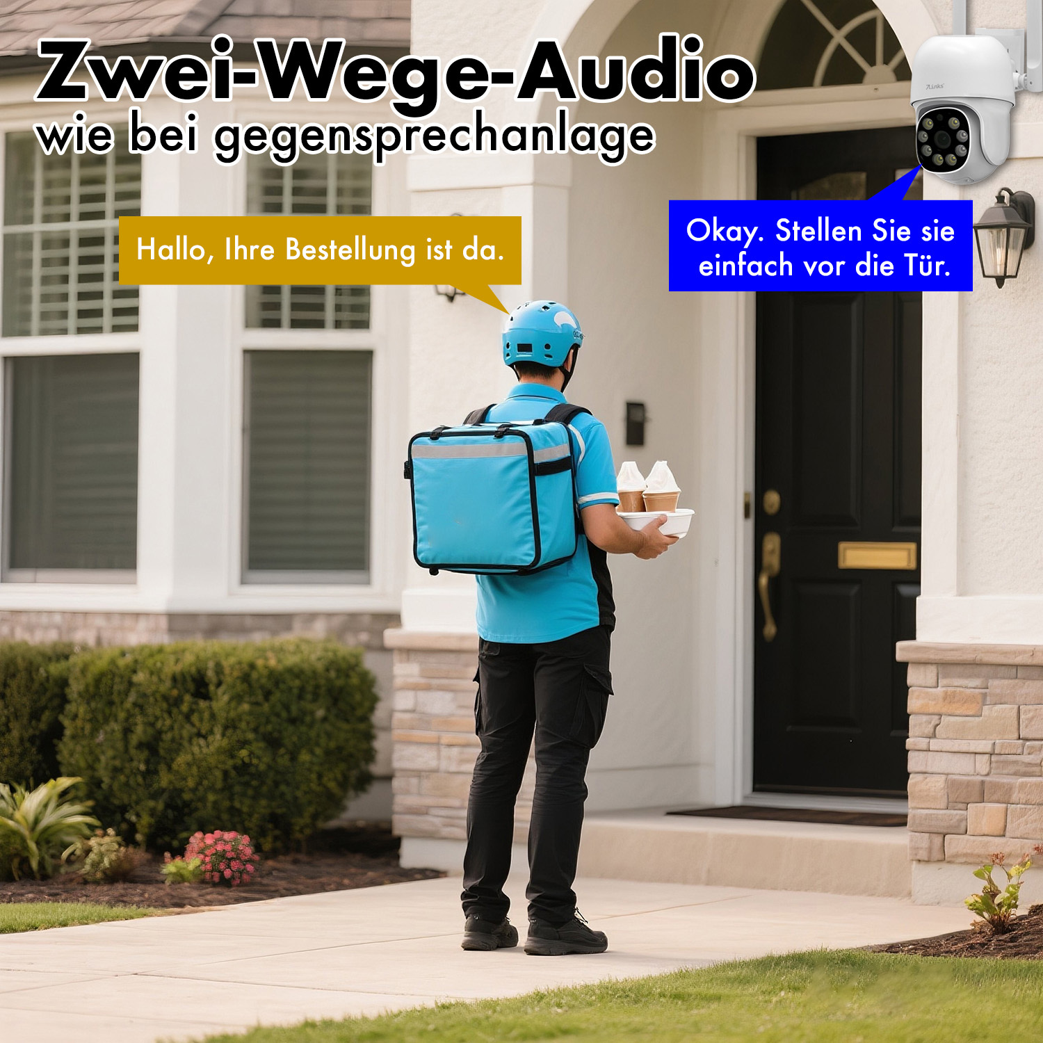 - Lautsprecher und Mikrofon für Gegensprech-Funktion (2-Wege-Kommunikation) und Aufnahmen mit Ton