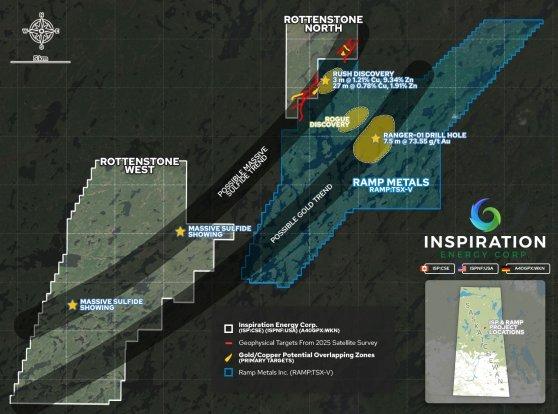Inspiration Energy ist ein kanadisches Mineralexplorationsunternehmen, dessen Hauptaugenmerk auf den Erwerb und die Erschließung vielversprechender Gold- und Basismetallkonzessionen gerichtet ist. Mit seinen Vorzeigeprojekten Rottenstone North und Rottenstone West ist das Unternehmen einer der größten Landbesitzer in einem der neuesten und aufregendsten Gold-Kupfer-VMS-Entdeckungskorridore (vulkanogene Massivsulfide) Kanadas. Weitere Informationen finden Sie in den Unternehmensinformationen auf SEDAR+ (www.sedarplus.ca).
