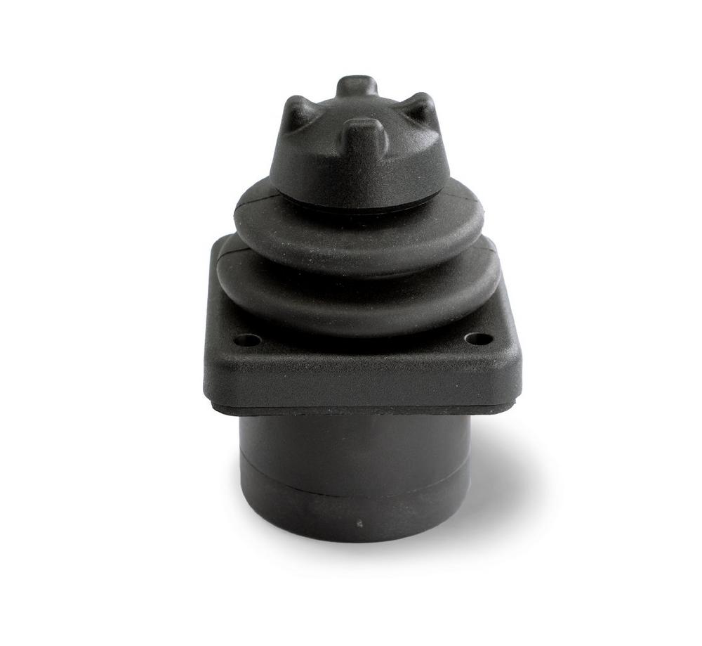 Auch die Mechanik der Joysticks ist sehr robust. Sie hält einer maximalen Belastung von bis zu 400 N stand. Um die auf den Schaft einwirkenden Kräfte abzuleiten, wurde der omnidirektionale Metallmechanismus der Eingabegeräte zudem mit einem Kugelpfannengelenk ausgestattet. Diese Konstruktion ist besonders widerstandsfähig gegen vertikale Stöße. Sie widersteht zudem großen Zieh- und Scherkräften. Die Fingerjoysticks der Serie 848 eignen sich daher ideal für den Einsatz in rauen Umgebungen. Da ihr Sensor darüber hinaus auf einer verschleißfreien Hall-Technologie basiert, weisen die Joysticks eine Lebensdauer von bis zu 10 Mio. Lebenszyklen auf. Für eine noch höhere Zuverlässigkeit sind sie optional mit redundanten Hall-Sensoren lieferbar.