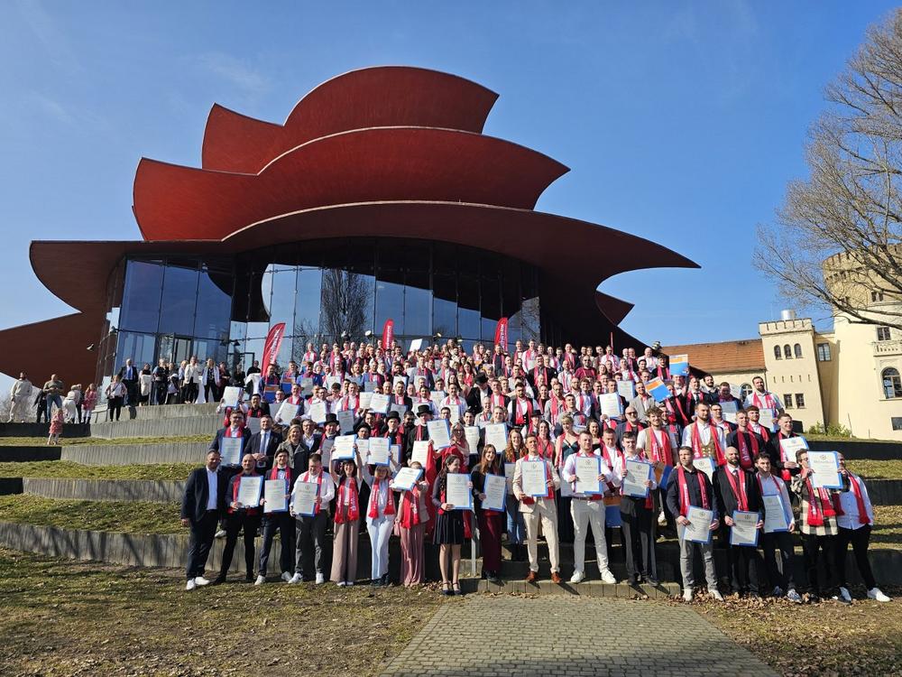 Ein besonderer Höhepunkt der Meisterbriefübergabe war die Festrede der Olympiasiegerin und Eisschnelllauf-Legende Claudia Pechstein. In ihrer Festrede sprach sie über Leistung, Disziplin und Zielstrebigkeit. Sie machte Eigenschaften erlebbar, die auch den Weg der Meisterabsolventinnen und Meisterabsolventen auf Ihrem Weg zum Meisterbrief prägten.