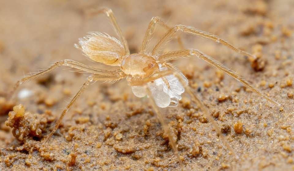 Together with his colleague Liphone Nophaseud from the National University of Laos, the Frankfurt arachnologist has conducted a detailed study of the spiders, which predominantly dwell in caves. “The spiders of the genus Speocera, which we have dubbed ‘cave midgets,’ are tiny spiders, only about one millimeter in size, which exhibit interesting brood care behavior. We discovered a female in her sheet web, which she had built in small cavities inside a stalagmite. There, she was carefully holding a single egg with her mouthparts. We believe this phenomenon may be due to the low availability of potential prey in the caves. This means that fewer but larger offspring have a better chance of surviving and establishing a new generation,” explains Jäger, and he continues, “We were able to observe another female carrying two already hatched spiderlings with her chelicerae. Amazingly, shortly after hatching the young animals were already almost half the size of their mother.” Species of the genus Sinoderces apparently also lay a greatly reduced number of eggs, following a similar strategy as the ‘cave midgets.’