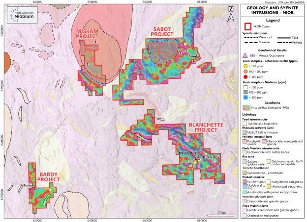 Das Unternehmen geht davon aus, dass das Gebiet La Tuque mehr als ein Niob- und Seltenerdelement-Mineralisierungsereignis beherbergen könnte, was die Explorationsmöglichkeiten auf Bardy, Blanchette, Sabot und Miskam ausweitet.