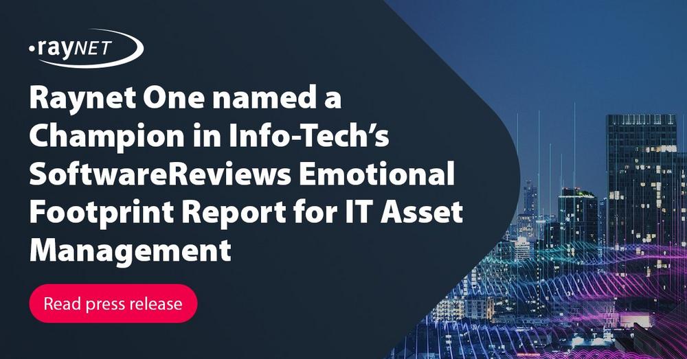 Raynet One, Raynet’s True IT Asset Visibility platform, has been named a Champion in Info-Tech Research Group’s SoftwareReviews Emotional Footprint Diamond 2025 for IT Asset Management (Midmarket).